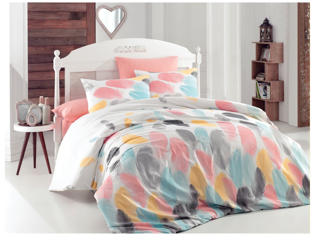 Hlavním vzorem bavlněného povlečení jsou pírka, peříčka a péra, která jsou v pastelových barvách