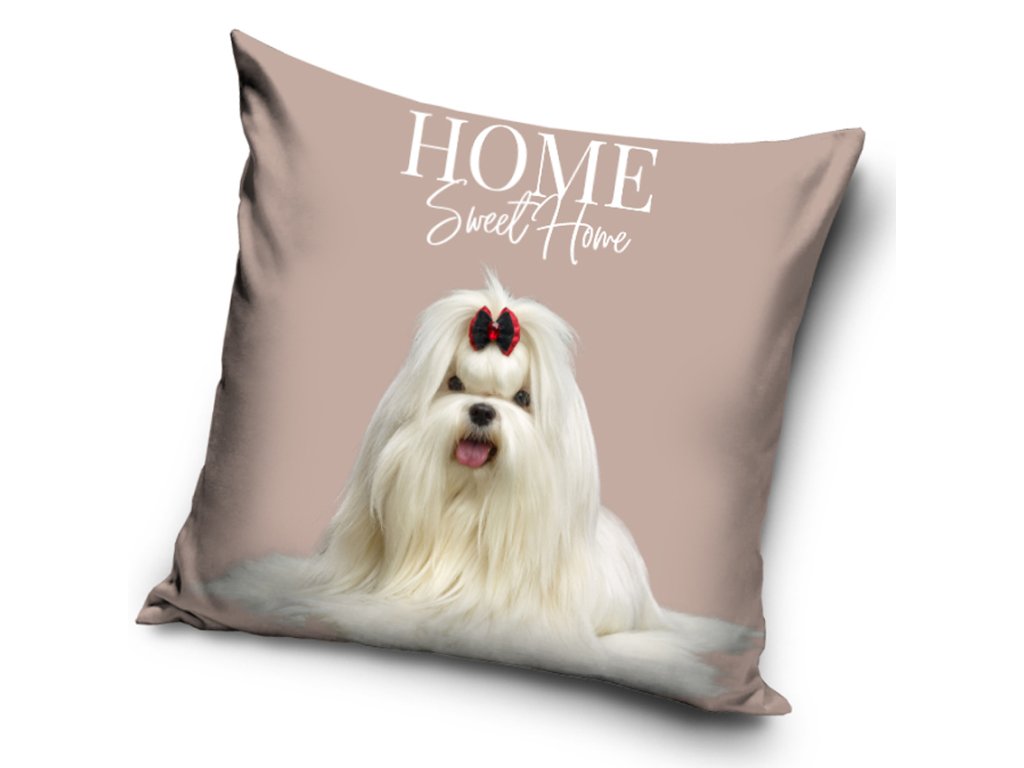Dekorační polštářek Maltézský psík Princezna je vyrobený ze 100% polyesteru