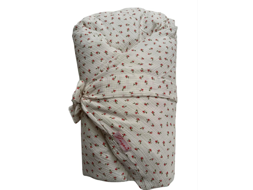 Dětská peřová zavinovačka - červené kytičky mušelin