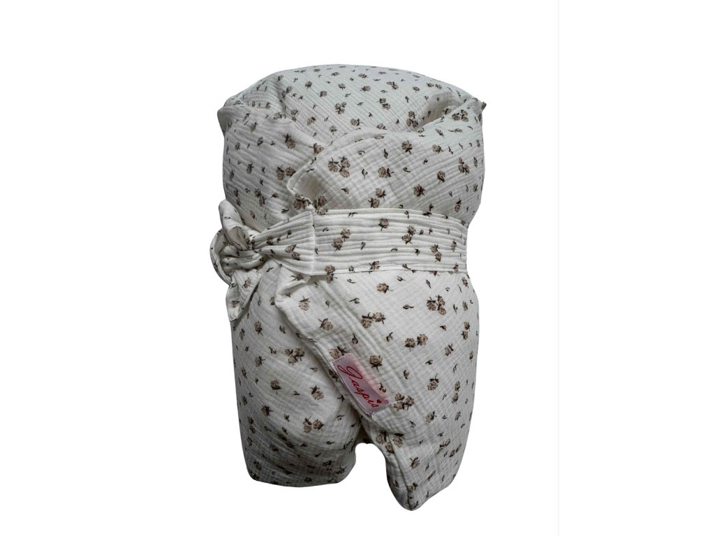 Dětská peřová zavinovačka - hnědá kytička mušelin