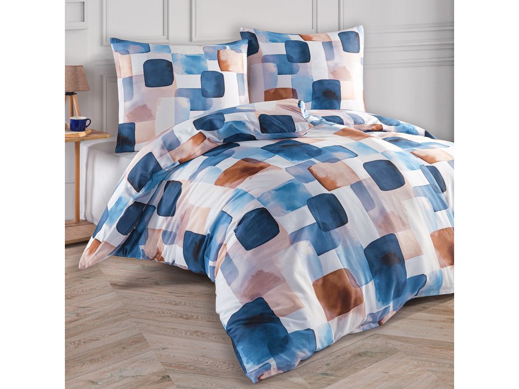 Originální geometrické motivy v hnědých a modrých barvách budou díky digitálnímu tisku na povlečení krásně vynikat